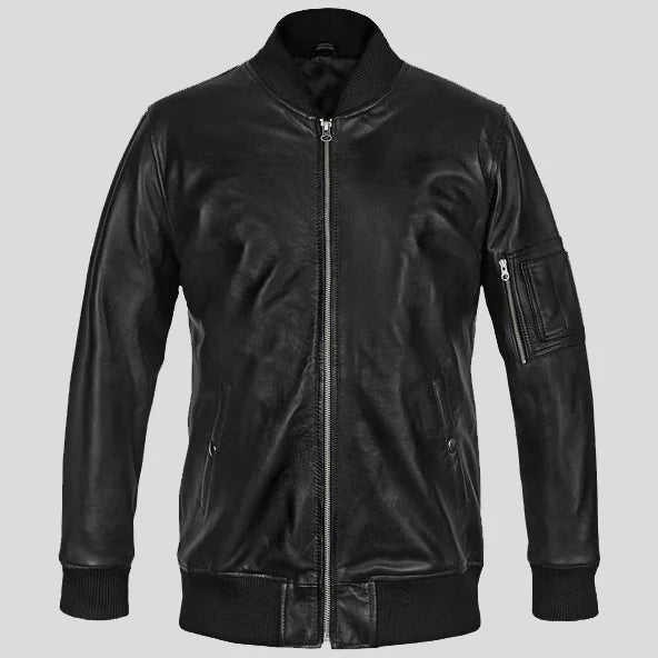 MA-1 Leather Bomber Jacket Black - Military-Inspired Modern Outerwear