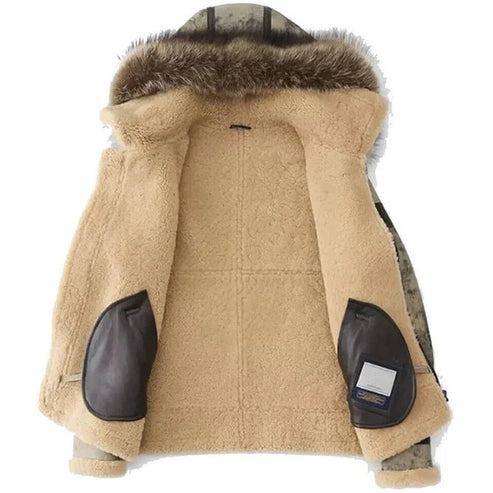 Men Aviator B3 Bomber Shearling Leather Jacket