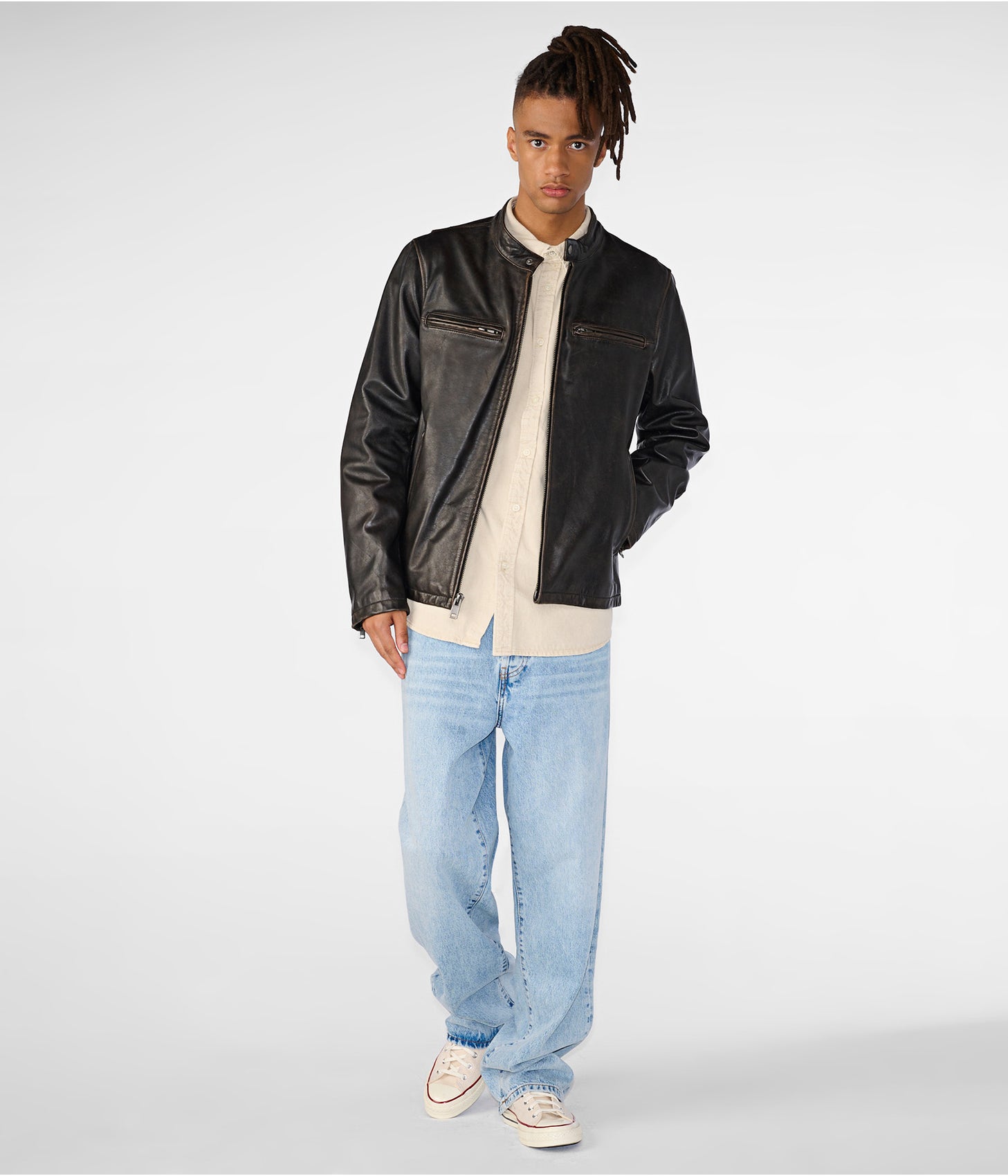 This lightweight leather jacket is ideal for transitional weather and casual styling. Great for streetwear or motorbike lovers.