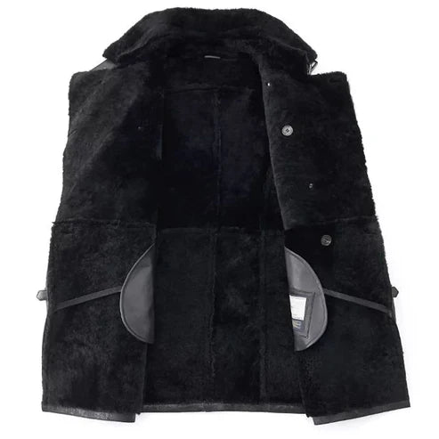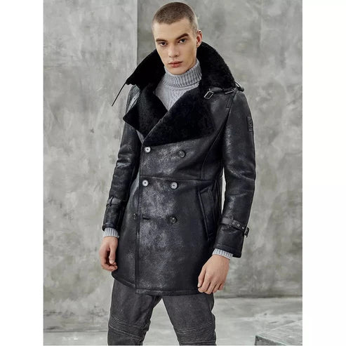 Men Black Shearling Leather Coat – Smart & Warm Winter Wear