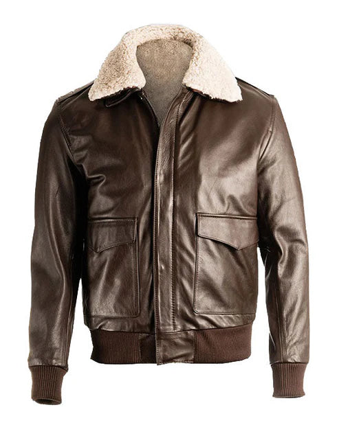 Q1: Is the Men Brown Pilot Shearling Jacket made with genuine leather?