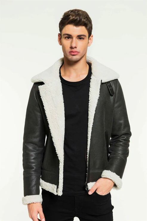 Men Grizzly Grey Aviator Shearling Jacket - Stylish Winter Outerwear