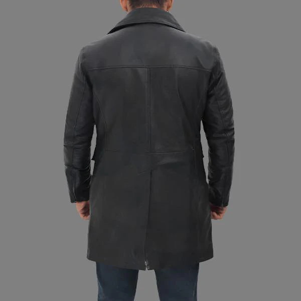 Shelby Men’s Four-Pocket Black Leather Trench Coat