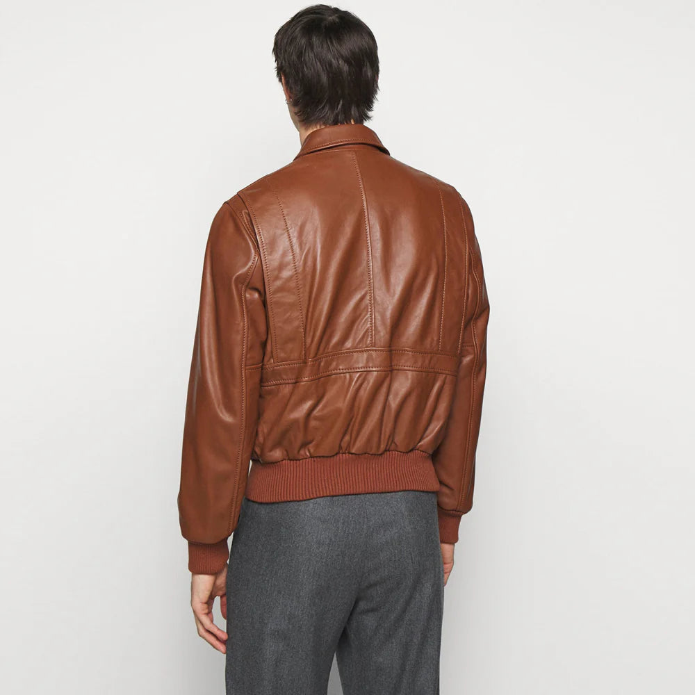 Trendy Men’s Tan Brown Leather Bomber Jacket - Smart, Stylish & Comfortable